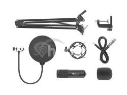 Obsah balenia: Mikrofón, stolný držiak s ohybným ramenom, Pop-filter, penová hudba, anti-vibračné košík