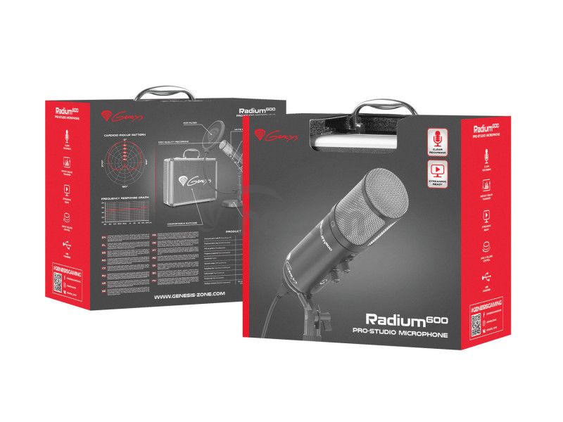 Genesis Radium 600 je kapacitný mikrofón, ktorý poskytuje skvelú reprodukciu zvuku a jeho kapsule je navrhnutá tak, aby čo najlepšie zbierala hlas, ktorý prúdi odpredu smerom k nej a účinne eliminovala zvuky za mikrofónom. Táto funkcia sa nazýva kardioidnou polarizácia, vďaka ktorej mikrofón realisticky reprodukuje farbu hlasu a tóny, čo umožňuje vyniknúť STREAMER aj jeho hlasovým schopnostiam.