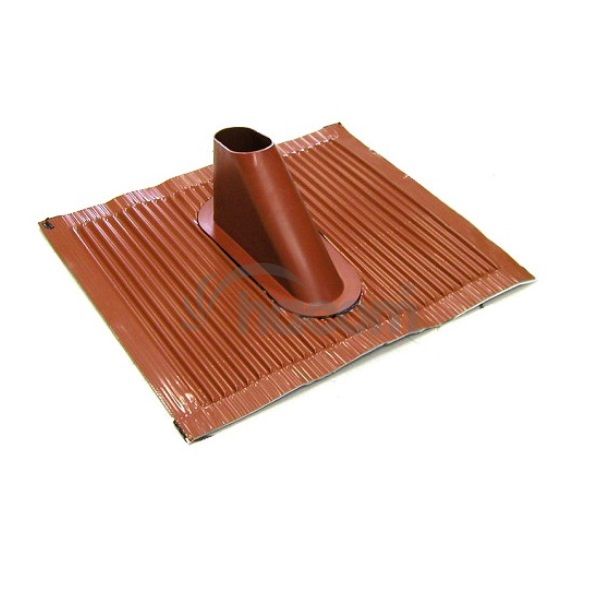 Hliníková červená (tehlová) strešná škridla umožňujúca prestup stožiaru i káblov cez strechu. Pre stožiar o maximálnej veľkosti 55 mm.