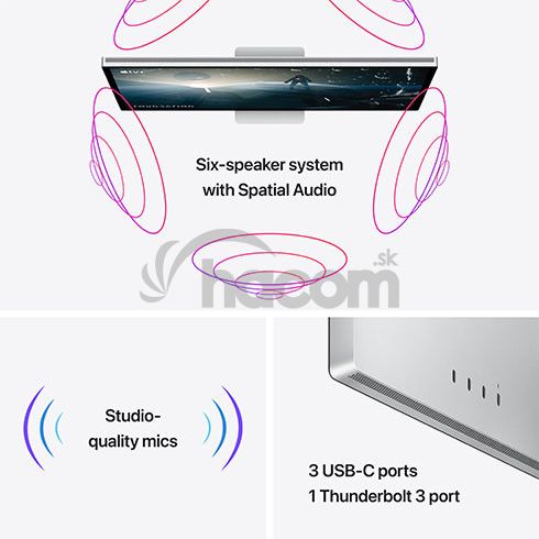 27-palcový Retina 5K displej. 12MP ultraširokouhlá kamera s centrovaním záberu. Tri mikrofóny a šesť reproduktorov s priestorovým zvukom.Štúdio Display ťa ako veľké nádherné okno od prvého okamihu vtiahne do nových svetov. Je tenký a má obrazovku cez celú plochu. A je nabitý fenomenálnymi funkciami, takže na ňom všetko ožíva v nádherných farbách a pôsobivých detailoch.