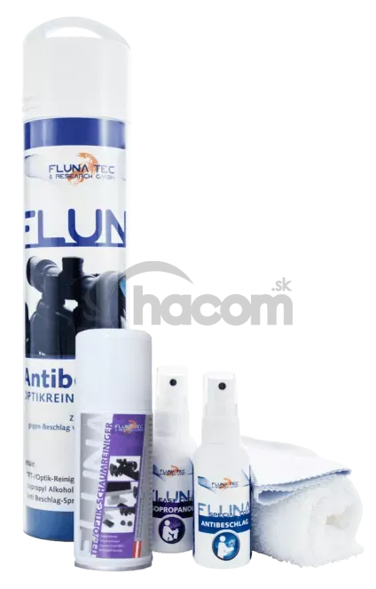 Fluna Anti Fog je náter na báze rozpúšťadiel. Zabraňuje zahmlievaniu sklenených povrchov v dôsledku teplotných rozdielov, najmä v poľovníckej optike, ako sú ďalekohľady, puškohľady a zameriavacie ďalekohľady alebo kolimátory. Fluna Anti Fog nepoškodzuje špeciálne vrstvy na optike a ľahko sa aplikuje.