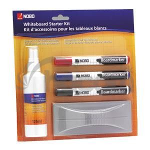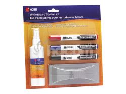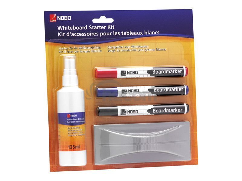 Súprava základných pomôcok k popisovacím tabuliam v blistri. Vhodné pre všetky typy bielych tabúľ stierateľných za sucha.3 popisovače (čierny, červený, modrý)