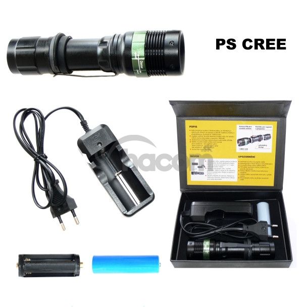 PS CREE LED 3W je kovová nabíjecí svítilna pro každodenní použití. Svítilna je vybavena Li-ion akumulátorem, který se nabíjí speciální nabíječkou z 220V - nabíječka je součástí balení. Napájení je alternativně možné i na 3ks AAA alkalických baterií. Světelný zdroj 3W LED CREE je v současnosti jeden ze zdrojů s nejvyšší svítivostí s životností až 100 tis. hodin. Otočný kroužek na hlavici svítilny umožňuje snadně nastavit přesný kužel světla. Průměr hlavice je 34mm. Svítilna má tři modifikace svitu: 100%, 30%, stroboskopické blikání - přepínání mezi mody lehkým namáčknutím vypínače.Technické parametry: