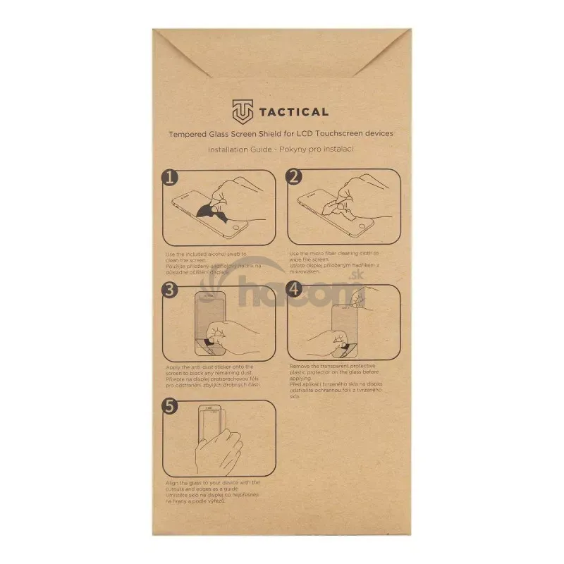 Súčasťou balenia je alkoholový obrúsok na vyčistenie a odmastenie displeja, handričku z mikrovlákna pre perfektné vyleštenie pred inštaláciou a aj následne pri používaní telefónu s už nalepeným sklom.