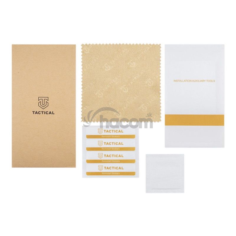 Súčasťou balenia je alkoholový obrúsok na vyčistenie a odmastenie displeja, handričku z mikrovlákna pre perfektné vyleštenie pred inštaláciou a aj následne pri používaní telefónu s už nalepeným sklom.