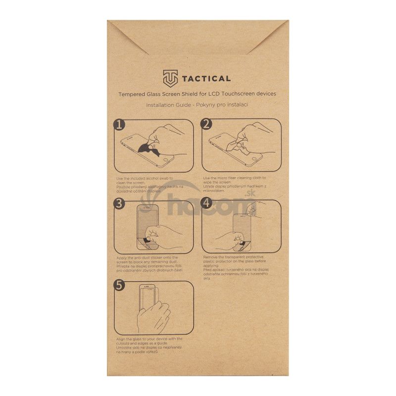 Súčasťou balenia je alkoholový obrúsok na vyčistenie a odmastenie displeja, handričku z mikrovlákna pre perfektné vyleštenie pred inštaláciou a aj následne pri používaní telefónu s už nalepeným sklom.
