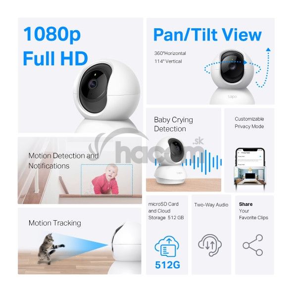 *Tapo C200C je vybavený videom vo vysokom rozlíšení 1080p, ktoré používateľom poskytuje jasné a detailné zábery. Až 9násobný digitálny zoom umožňuje používateľom vidieť ostrejšie zobrazenie záujmových oblastí.