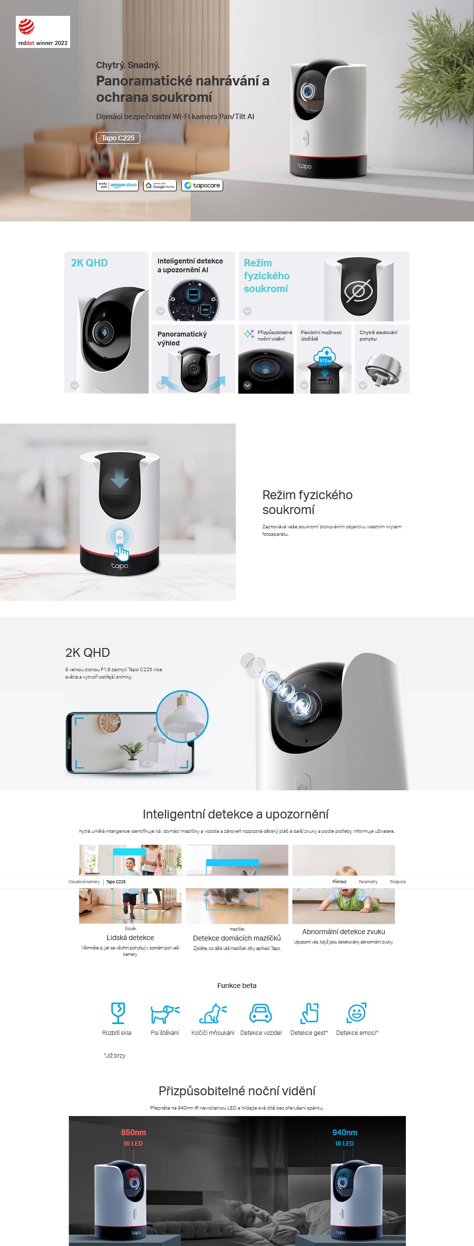 - Tapo C225 2K QHD 4MP domáca bezpečnostná Wi-Fi kamera