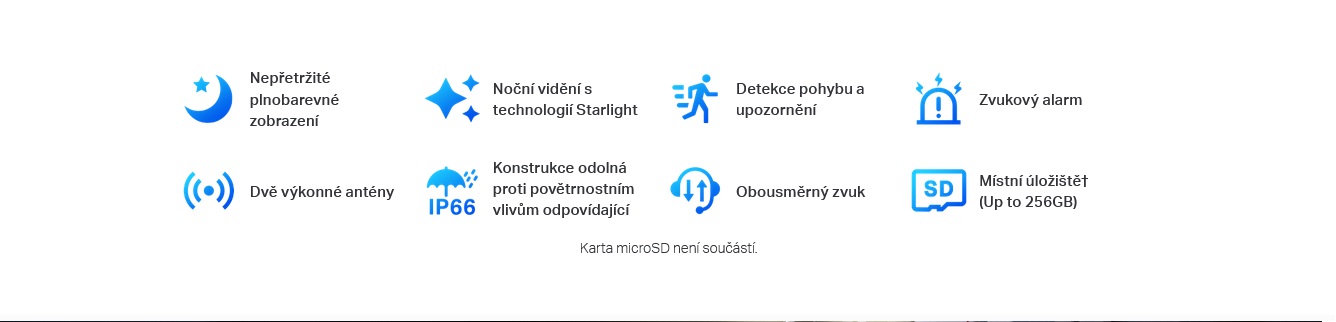 • Nočné videnie s technológiou Starlight – snímač Starlight s vysokou citlivosťou zachytáva obraz vo vyššej kvalite aj za zlých svetelných podmienok.