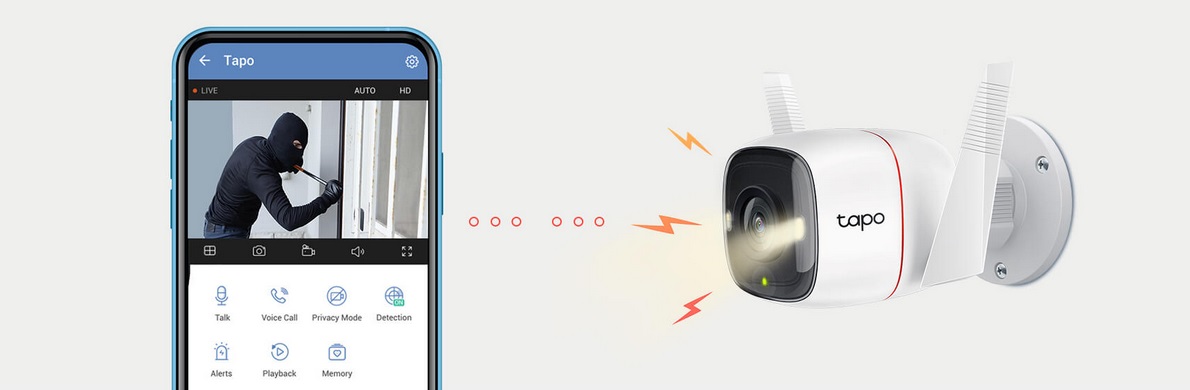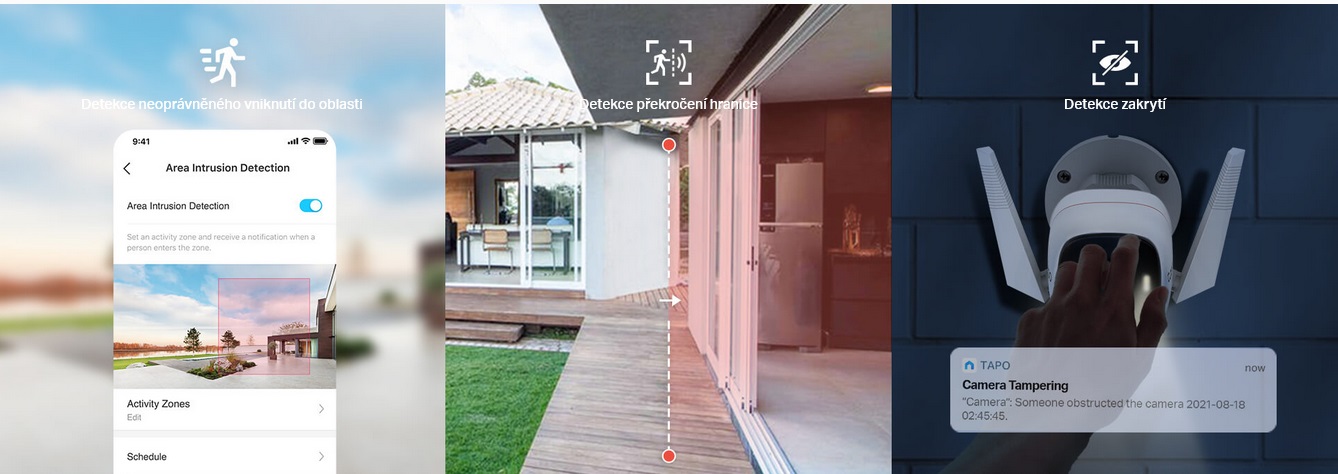 • Zvukový a svetelný alarm – aktivácia svetelných a zvukových efektov na odradenie nevítaných návštevníkov.