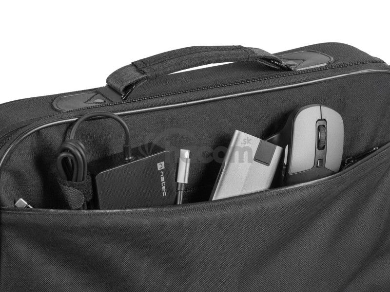 Taška bola navrhnutá tak, aby sa do nej ľahko zmestil nielen notebook s maximálnou uhlopriečkou 17,3", ale aj napájací adaptér a ďalšie príslušenstvo. Okrem mobilného počítača v nej môžete prenášať aj ďalšie dôležité veci - vďaka prednej priehradke na zips, kam môžete schovať napríklad dokumenty.