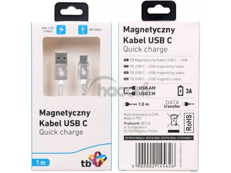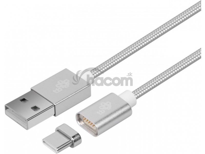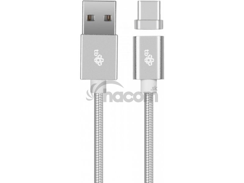 Magnetický kábel USB C - USB kábel typu C s dĺžkou 1 m na nabíjanie a komunikáciu so smartfónmi, perifériami a ďalšími zariadeniami. Kábel s neobvyklou funkciou - magnetický, odpojiteľný konektor je možné kedykoľvek ľahko pripojiť.Farba: strieborná