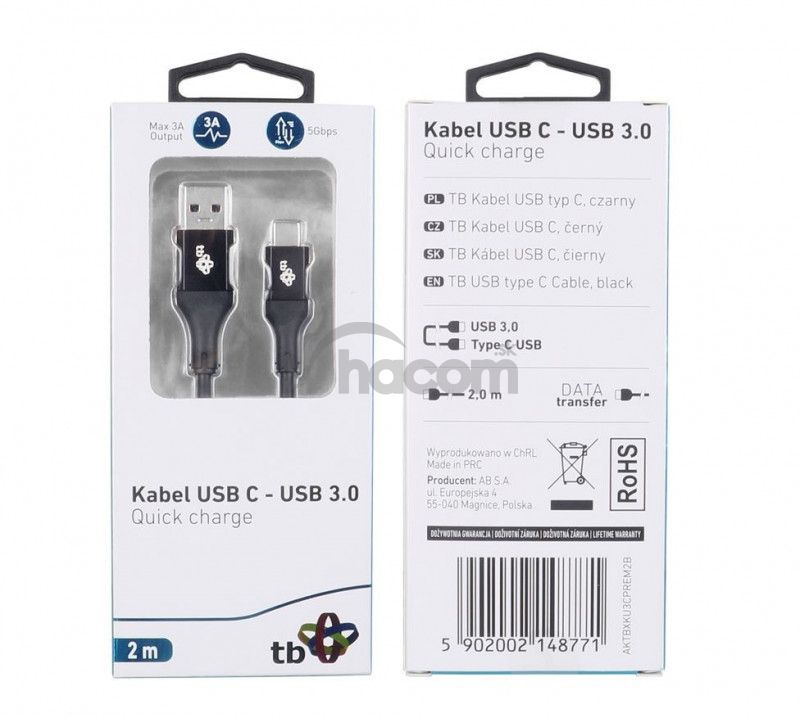 - TB USB 3.0/USB-C 2m premium 3A čierny AKTBXKU3CPREM2B