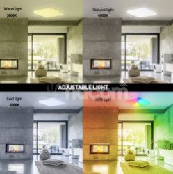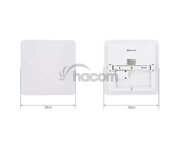 WiFi Smart LED štvorcové stropné svetlo 33x33x5cm, 3000-6500K + RGB 16 míľ farieb, životnosť 15000 h, IP54, Biele/teplé svetlo nastaviteľné a stmievateľné + RGB 16 míľ farieb, kompatibilné s Amazon Alexa, Google Assistant .Jednoduché nastavenie farby, chromatičnosti a jasu svetla pomocou aplikácie Tellur Smart.