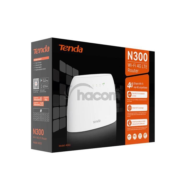 - Tenda 4G03 Wi-Fi N300 4G LTE router, 2x WAN / LAN, 1x Minisieťami, IPv6, VPN, LTE Cat.4, 4x anténa, CZ App 4G03