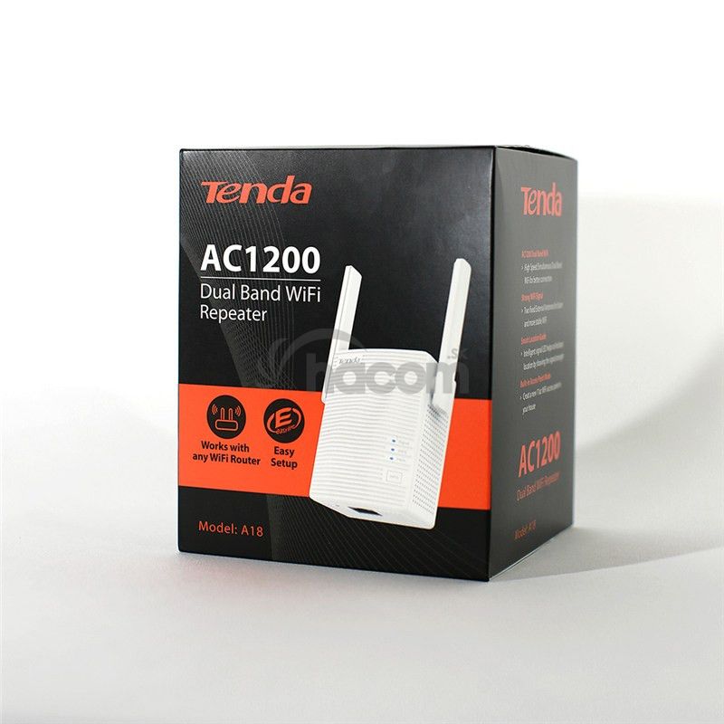 Tenda A18 - WiFi Range Extender AC1200 Dual Band, opakovač 1200 Mb / s, 1x LAN 100 Mb / s, WPS, 2x 2dBi A18