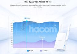 WiFi Extender 802.11ax/ac/a/b/g/n AX3000 (2,4 GHz: 574 Mb/s; 5GHz: 2402 Mb/s), 1x Gigabitový LAN port 1000 Mb/s, 2x externá anténa 5dBi, , MU-MIMO, Repeater / Access Point, WPS, zabezpečenie WPA/WPA2/WP3. Rozšírenie existujúcej WiFi siete.Súčasťou balenia je český, slovenský a poľský manuál.
