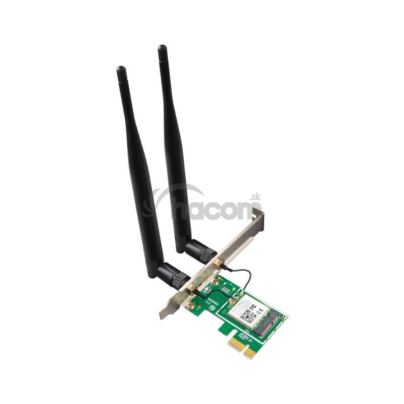 Bezdrátový Wi-Fi PCI Express AC1200 adaptér. Rychlost až 1167 Mb/s, 802.11ac/a/b/g/n, 2x odnímatelná anténa 5 dBi, zabezpečení 64/128bit WPA/WPA2-PSK, (2,4GHz 300Mb/s + 5GHz 867Mb/s), Windows 10, PCIe, autoinstalace.Součástí balení je český, slovenský a polský manuál.