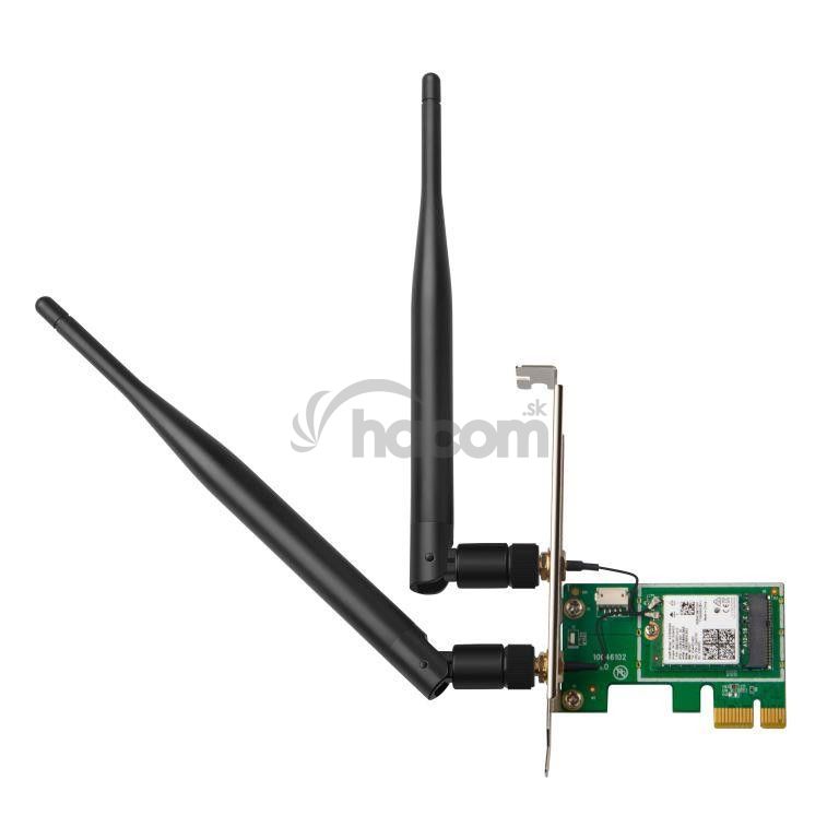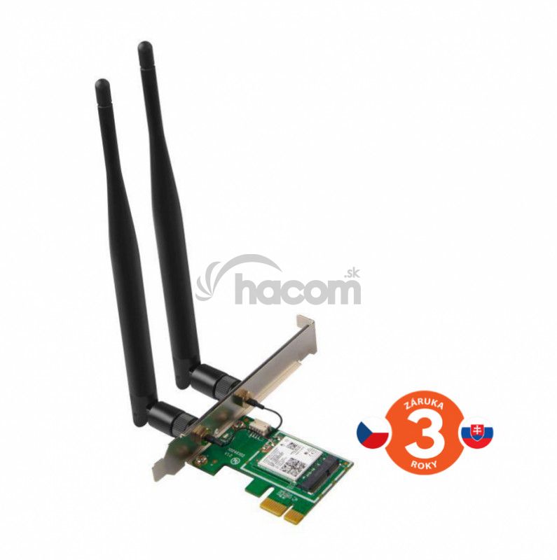 Bezdrôtový Wi-Fi PCI Express adaptér s Wi-Fi 6 a Bluetooth 5.0. Rýchlosť AX3000 až 2976 Mb / s, 802.11ax / ac / a / b / g / n, 2x odnímateľná anténa 5 dBi, MU-MIMO, zabezpečenie WPA3-SAE, 64 / 128bit WPA / WPA2-PSK, (2,4GHz 574Mb / s + 5GHz 2402 Mb / s), 1024QAM, Windows 10, BLT 5.0 / 4.2 / 4.0, PCIe, autoinštalácia.Súčasťou balenia je český, slovenský a poľský manuál.