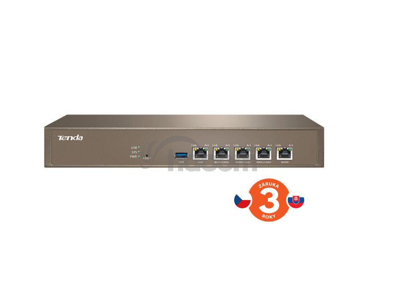 Tenda G1 Enterprise Gigabit Router je určený pre riadenie naročnejších sietí a AP, MultiWAN, 5x Gigabit RJ45 (3x WAN/LAN, 1x WAN, 1x LAN), podporuje manažment WiFi AP (až 256ks) Tenda i21, i24, i25, i27, i29 , a ďalších. Fast Roaming IEEE 802.11k/v/r, IPSec VPN, PPTP, L2TP, Smart Bandwidth control, DHCP server.Popis produktu