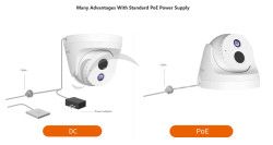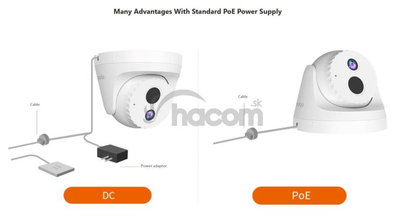 Kamera podporuje PoE napájanie pomocou Ethernet portu RJ45, a to podľa štandardu PoE IEEE 802.3af. Kameru stačí iba pripojiť k portu PoE rekordéra alebo PoE switch/injektoru. Tiež je možné napájanie pomocou DC konektora.