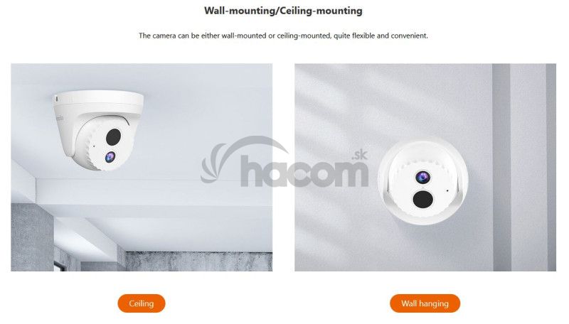 Kamera má čistý a jednoduchý dizajn, ktorý je zároveň veľmi efektívny. Disponuje stupňom krytia IP67 - určená do vonkajšieho prostredia, odolná voči prachu aj vode. Montáž je možné vykonať na stenu alebo strop.