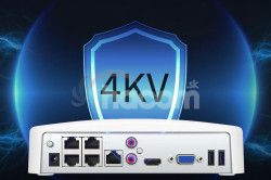 Rekordér podporuje PoE napájanie všetkých 4 portov RJ45 pre kamery, a to podľa štandardov PoE IEEE 802.3at/802.3af. Celkom 40 W. Pripojenie kamier je možné až na 250m dlhom Ethernet kábli. Kameru stačí iba pripojiť k portu rekordéra.