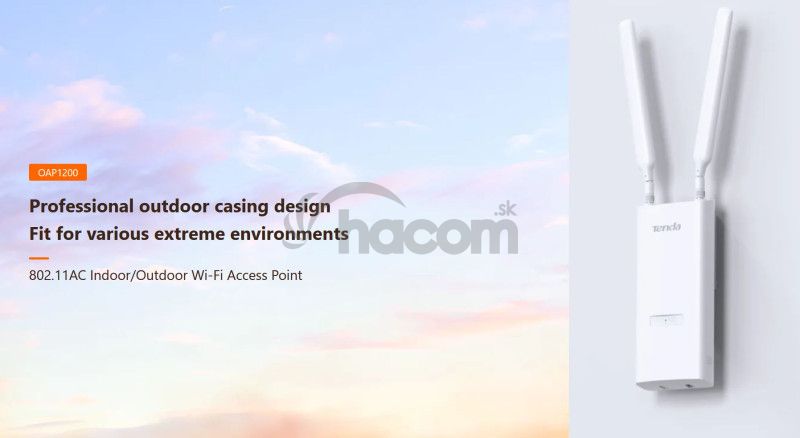 - Tenda OAP1200 Outdoor Wi-Fi AP AC1200, Gigabit LAN, IP65, VLAN, 802.11k/v/r, aktívny aj pasívny PoE 75011999