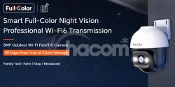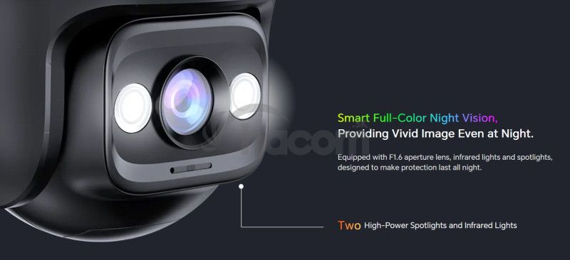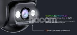 Vonkajšia otočná IP kamera s online sledovaním pomocou mobilného telefónu a tabletu. Ukladanie záznamov a fotografií na microSD kartu alebo Cloud. Rozlíšenie 3 MPx pre video vo vysokej kvalite, dennú aj nočnú prevádzku vďaka IR a LED dosvitu až 30 m, ohnisková vzdialenosť 4,0 mm, Wi-Fi 6 b/g/n/ax, 1x LAN RJ45 10/100 Mb/s, mikrofón a reproduktor, slot pre microSD kartu s veľkosťou až . Uhol záberu 355° horizontálne a 90° vertikálne. Kamera podporuje detekciu pohybu, osoby a vozidlá, a automatické otáčanie za pohybom/osobou. Súčasťou balenia je držiak na stenu/strop.