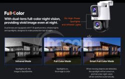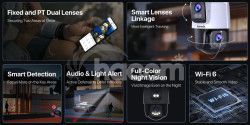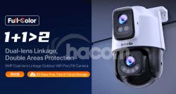 Vonkajšia otočná IP kamera s dvojitou optikou a rozlíšením celkom 6MP (2ks 2304 × 1296) a prenosom zvuku, uhol záberu 360 ° horizontálne a 90 ° vertikálne, podporou OnVif, nočné videnie s dosvitom 30 m, detekcia pohybu a osoby, automatické otáčanie za pohyb , vstavaný mikrofón, vstavaný reproduktor a siréna, cloud platforma, slot pre SD kartu max. 512 GB, krytie IP65, pripojenie cez WiFi 6 a Ethernet RJ45, aplikácia pre Android a iOS v slovenčine.Popis produktu