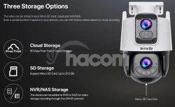 Kamera ukladá dáta do vnútorného alebo Cloudového úložiska. Vnútorné úložisko je tvorené slotom pre microSD kartu maximálnej kapacity 512 GB. Tiež je možné priamo v aplikácii TDSEE prikúpiť Cloudové úložisko, dáta sú tak chránené proti odcudzeniu alebo poškodeniu kamery. Cloudové úložisko je európske a spĺňajme normy na ochranu osobných dát ISO/IEC 27018. Dáta sú špeciálne kódované pomocou AES 256-bit šifrovania. Onvif protokol je veľmi dôležitý pre pripojenie kamery k iným systémom. Vďaka podpore Onvif protokolu je možné kameru pripojiť k NVR rekordérom, NAS serverom a ďalším zariadeniam akejkoľvek značky, stačí aby podporovala štandard Onvif.