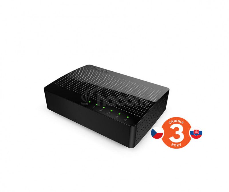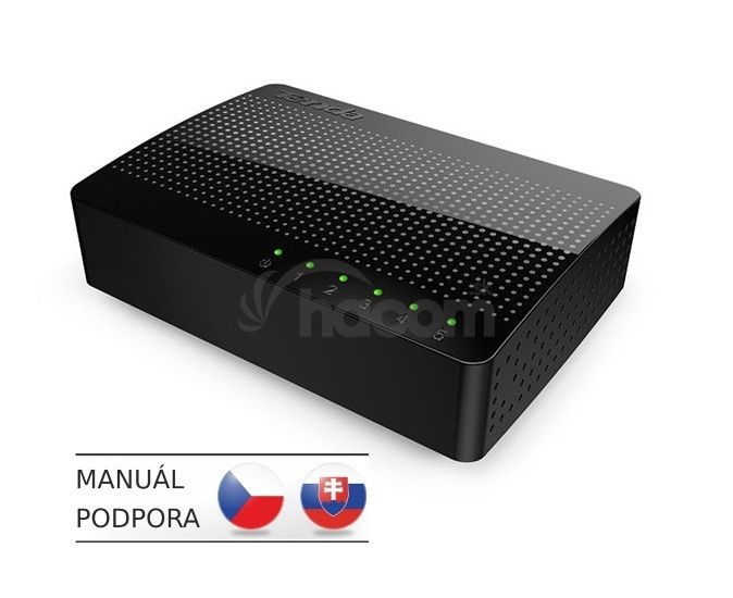 Switch 5x GLAN, rýchlosti 10/100 / 1000Mb / s, Auto MDI / MDIX, nízka spotreba energie.