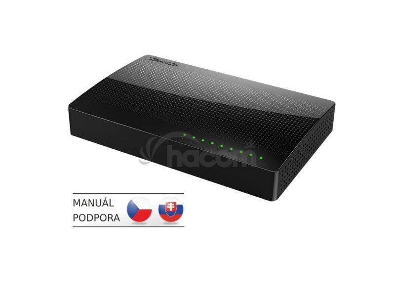 Switch 8x GLAN, rýchlosti 10/100 / 1000Mb / s, Auto MDI / MDIX, nízka spotreba energie.