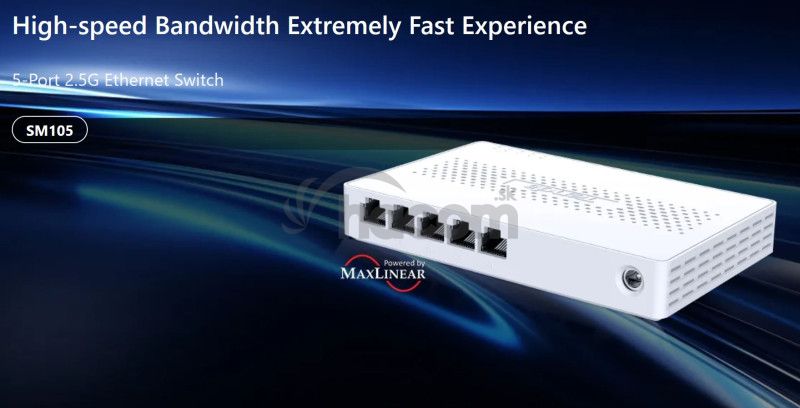 Tenda SM105 prepína dáta pomocou 5-tich portov RJ45 s rýchlosťou 100/1000/2500 Mb/s. Je ideálnym upgradom siete na rýchlosť 2.5G z pôvodnej 1G. taktiež je neoddeliteľnou súčasťou pre prácu s veľkým objemom dát na PC. prepájanie uzlov v móde Store-and-Forward.