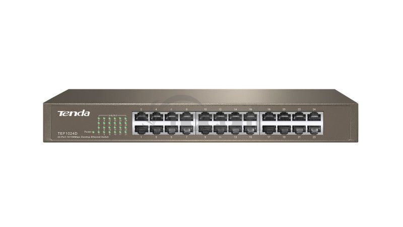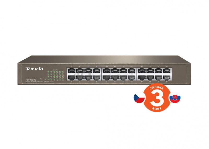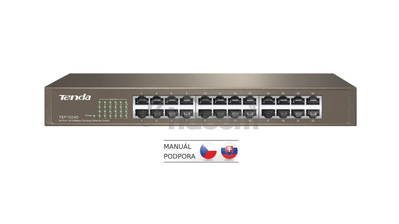 - Tenda TEF1024D - 24x 10/100 Mb / s Fast Ethernet Switch, Fanless-bez ventilátorov, Rackmount, 6kV ochrana TEF1024D