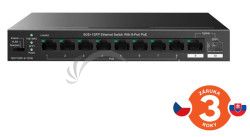 Porty: 8x 10/100/1000 Mbps porty RJ45 auto-negácie as podporou PoE IEEE802.3 at/af PoE standart