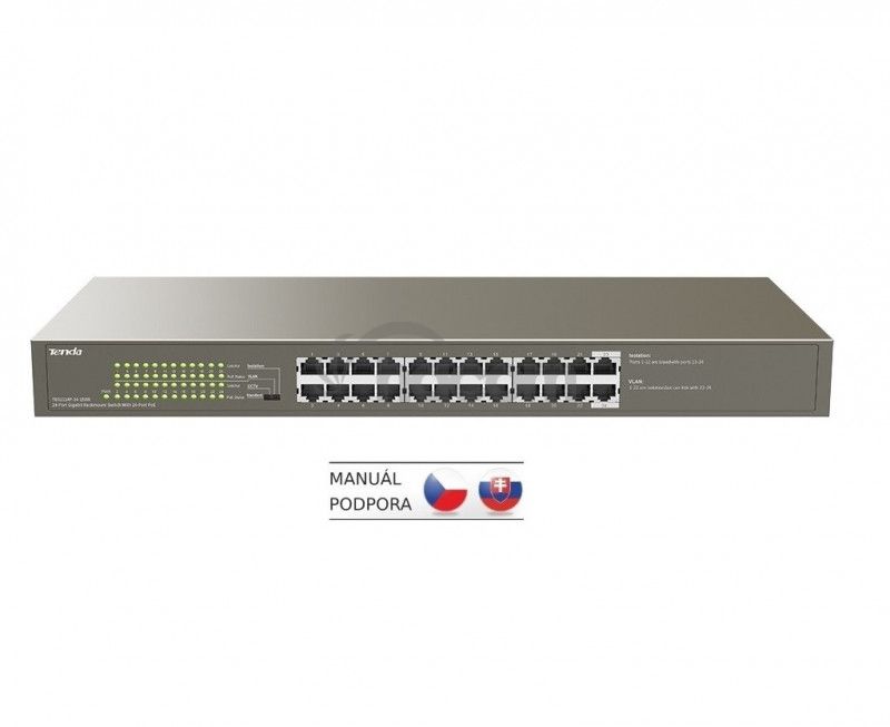 - Tenda TEG1124P-24-250W PoE AT Gigabit switch 24x 1Gb/ss PoE 802.3af/at, PoE 225W, Rackmount, VLAN TEG1124P-24-250W