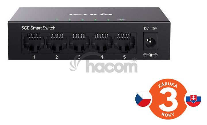- Tenda TEG2205D Websmart L2 cloud managed switch, 5x 10/100/1000 Mbps, Kov, Fanless - bez ventilátorov 75012017