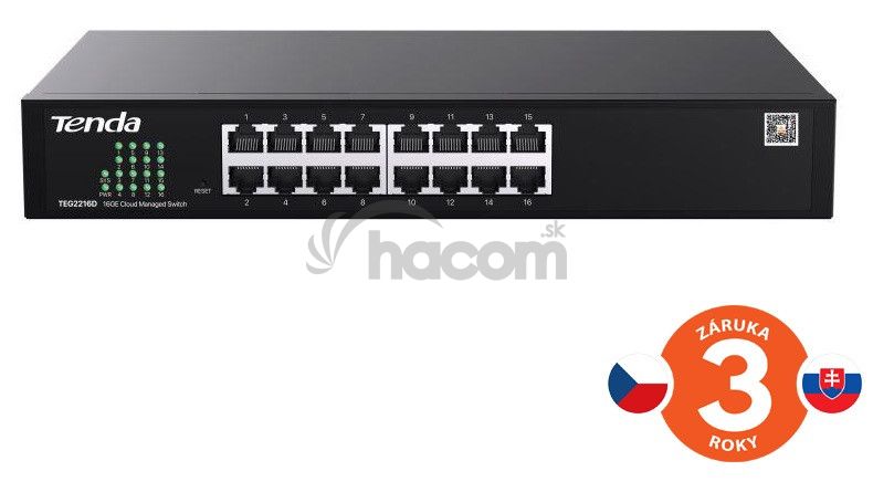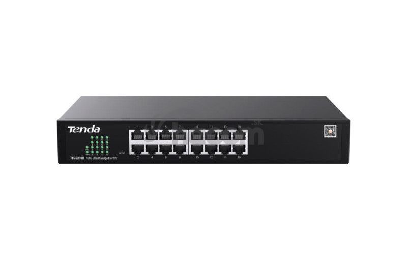 - Tenda TEG2216D Websmart L2 cloud managed switch, 16x 10/100/1000 Mbps, Kov, Fanless-bez ventilátorov 75012019