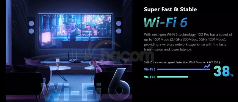 Výhod využitia oboch pásiem je hneď niekoľko. Samozrejmosťou je prezeranie webových stránok, sťahovanie súborov, emaily a pod. ale u vďaka dvom pásmom tiež hranie náročných Online hier, HD/FullHD/4K/8K streamovanie videa a zvlášť aplikácia kde je dôležitá latencia. Pásmo 2,4 GHz tiež býva vo väčších zástavbách alebo panelových domoch veľmi zarušené, a dochádza tak k degradácii výkonu na nižšiu úroveň, pri použití aj 5 GHz vám táto starosť úplne odpadá. Pokrytie signálom je zaistené pomocou piatich 6 dBi antén. Je možné tiež využiť režim zopakovania signálu v režime Universal Repeater alebo mód Prístupového bou AP mode. Router TX2 Pro sám automaticky zvolí ideálnu sieť pre koncové zariadenie.