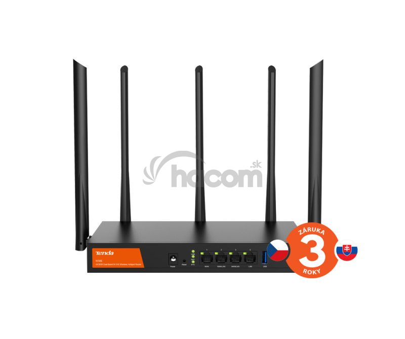 AX3000 Dual-Band Wi-Fi Load Balance Hotspot router 802.11 ax/ac/a/b/g/n, až 2976 Mb/s, 1x GWAN, 2x GWAN/GLAN, 1x GLAN, 5x anténa 6 dBi. (2,4GHz 574Mbps + 5GHz 2402Mbps), Captive portal, VPN Server / Client, Multi WAN balance, kontrolér pre AP Tenda, DDos + ARP attack protection, DDNS.Súčasťou balenia je český, slovenský, a poľský manuál.