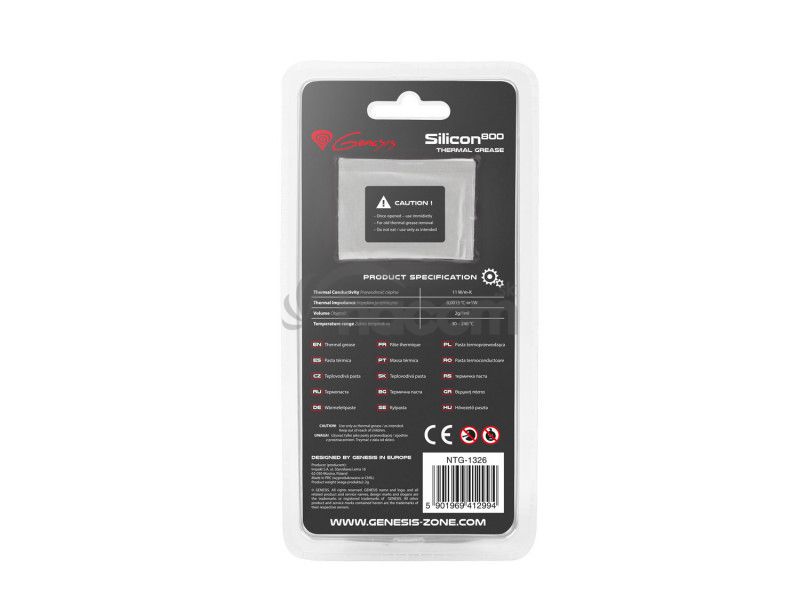 Genesis Silicon 800 je teplovodivá pasta, ktorá umožňuje efektívny odvod tepla z procesora, čo zaručí vášmu nadupanému hardvéru optimálnu teplotu a stabilný výkon pri náročnom používaní.Teplovodivá pasta Silicon 800 spĺňa tie najvyššie požiadavky, čoho dôkazom sú vysoké hodnoty tepelnej vodivosti, nízky tepelný odpor, nevodivosť a odolnosť proti korózii. Pastu nie je nutné zahrievať - maximálne hodnoty poskytuje ihneď po aplikácii.