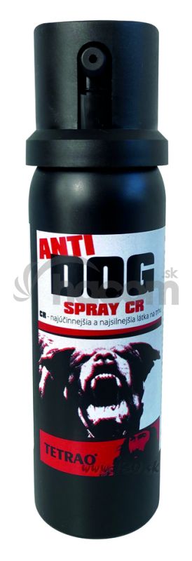 Veľmi účinný obranný sprej proti agresívnym zvieratám s najúčinnejšou látkou dostupnou na našom trhu. Extrémne silný účinok zaručuje syntetická látka CR. 0,1%-ný roztok tejto látky má rovnaký účinok ako ako 30%-ný roztok kapsaicínu. Látka CR sa radí medzi najsilnejšie látky na trhu. Pred dospelým človekom sa bez problémov ubránite už po 2 sekúndach po aplikácií. Človeka to doslova na určitý čas odrovná, a vy tak máte dotatok času na útek.