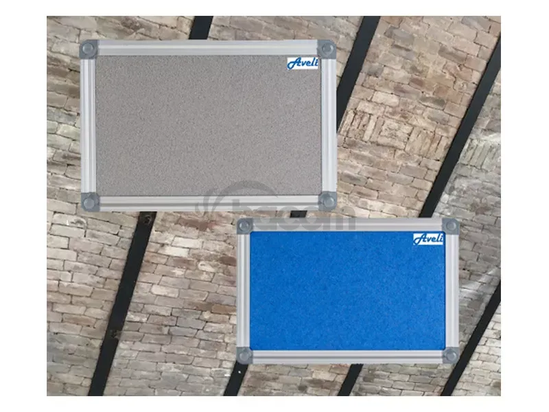 Moderná textilná nástenka AVELI má vysoko odolný povrch proti poškodeniu pri práci s napináčikmi a špendlíkmi. Má ľahkú konštrukciu a elegantný rám z kvalitného eloxovaného hliníka. Nástenka má moderné plastové uzávery, ktoré zakryjú upevnenie na stenu.