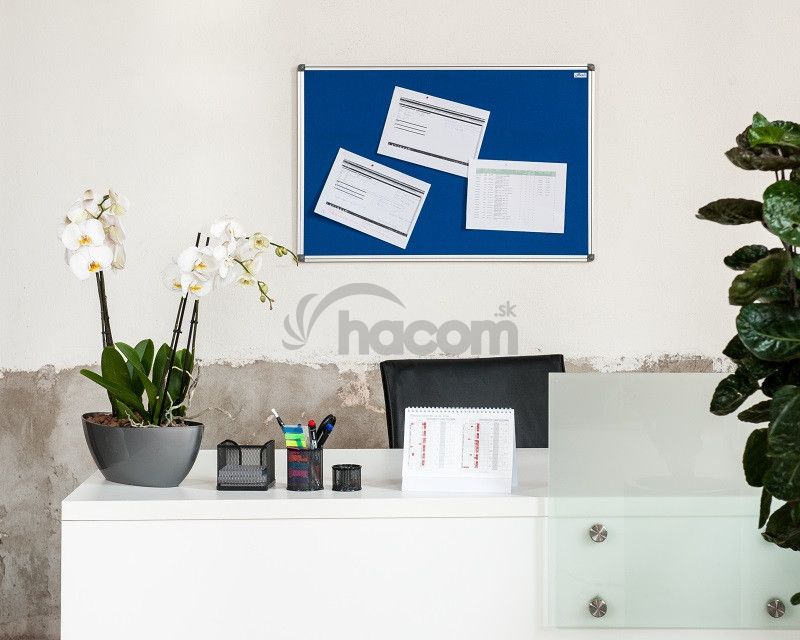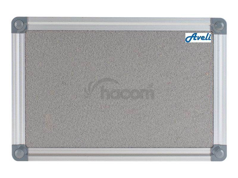Textilná nástenka v šedej farbe s hliníkovým rámom vhodná do prezentačných priestorov, kancelárií, firiem aj na úrady. Pod textilným povrchom je drevovláknitá doska, ktorá umožňuje dlhodobé používanie.- Rozmer: 90 x 120 cm