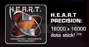 Aby bola zaručená exkluzívny vysoká presnosť u leteckého ovládača T.16000M FCS je použitá technológia HEART HallEffect AccuRate Technology ™ poskytujúca 16-bitové rozlíšenie (tj. 16000 x 16000 hodnôt) - rovnako vysoká presnosť je použitá u špičkového joysticku HOTAS Warthog, ktorá hráčom dovoľuje bojovať s nepriateľmi s chirurgickou presnosťou. Špirálová pružina (o priemere 2.8 mm) vnútri joysticku poskytuje pevný, lineárne a hladký pohyb. T.16000M FCS ponúka 4 nezávislé osi vrátane otočného kormidla (ovládaná rotujúce rukoväť) a progresívny ovládač plynu, 16 akčných tlačidiel opatrených popisom v štýle Braillovho písma, jeden 8-cestný klobúčik POV (Point of View) a ergonomickú spúšť. Jeho výrazné oranžové označenie a podsvietenie prináša hráčom celkom novú úroveň prežitkov.