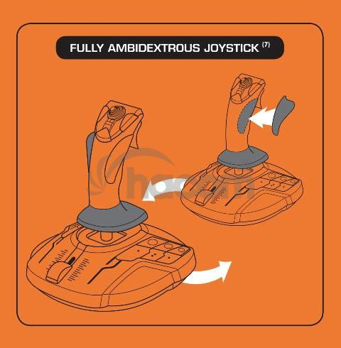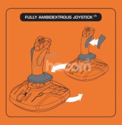 256 krát väčšiu presnosť než u ostatných súčasných systémov (tj. Rozlíšenie 16000 x 16000 hodnôt!). Magnety zaisťujú hladký pohyb bez trenia s presnosťou britvy, ktorá neklesá v čase. Špirálová pružina (o priemere 2.8 mm) umiestnená vnútri páky zaisťuje pevný, lineárne a hladký pohyb. Joystick vhodný pre obe ruky! Tri odmontovateľné súčasti umožňujú perfektné prispôsobenie joysticku pre použitie ľavú alebo pravou rukou. Pilotovanie oboma rukami je teraz možné vo všetkých hrách, ktoré sú kompatibilné s dvoma joysticky.