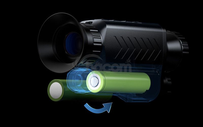 Monokulár TS005 disponuje dvoma vymeniteľnými batériami 18650 s výdržou až 6 hodín prevádzky a odolnou hliníkovou konštrukciou s ochranou krytia IP65, čo oceníte pri loveckých aktivitách, záchranných misiách, hliadkovaní a ďalších outdoorových činnostiach.