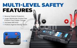 Podmienkou pre testovanie batérií je nadštandardná bezpečnosť. Tú TOPDON BT300P zaisťuje medenými svorkami s ochranou proti iskreniu, káblom oplášteným PVC a vstavanou automatickou ochranou proti prepólovaniu. Jeho izolovaný kryt ABS chráni celé zariadenie a je odolný proti poškodeniu.