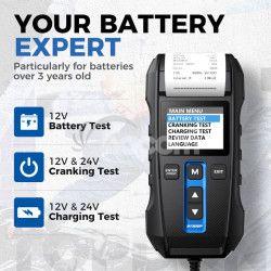 • Tento pokročilý tester batérií sa automaticky zapne ihneď po pripojení k batérii a privíta Vás prehľadným, 2.4” farebným displejom.